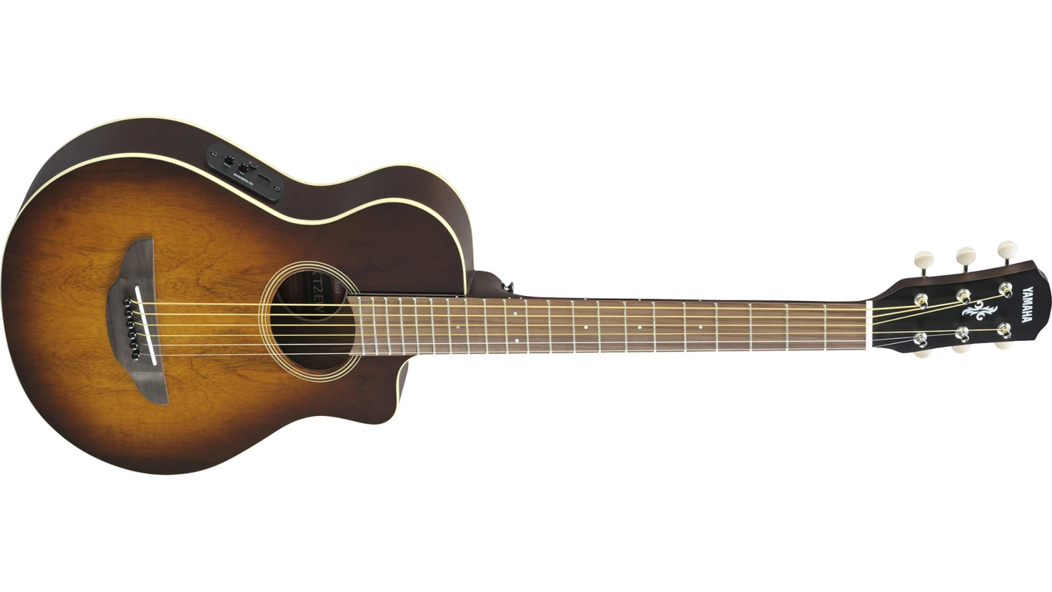 APXT2 is a 3/4 size version of the world best-selling acoustic-electric guitar, the APX500III. This fun and well-constructed compact guitar makes great company when you’re on the road. APXT2 features the A.R.T.-based pickup system and Yamaha’s proprietary tuner with great sensitivity and accuracy for quick tuning. APXT2EW-TBS comes in an Exotic Wood Tobacco Brown Sunburst finish and has a Spruce top, Meranti back and sides and Rosewood fingerboard and bridge. Includes a gig bag.