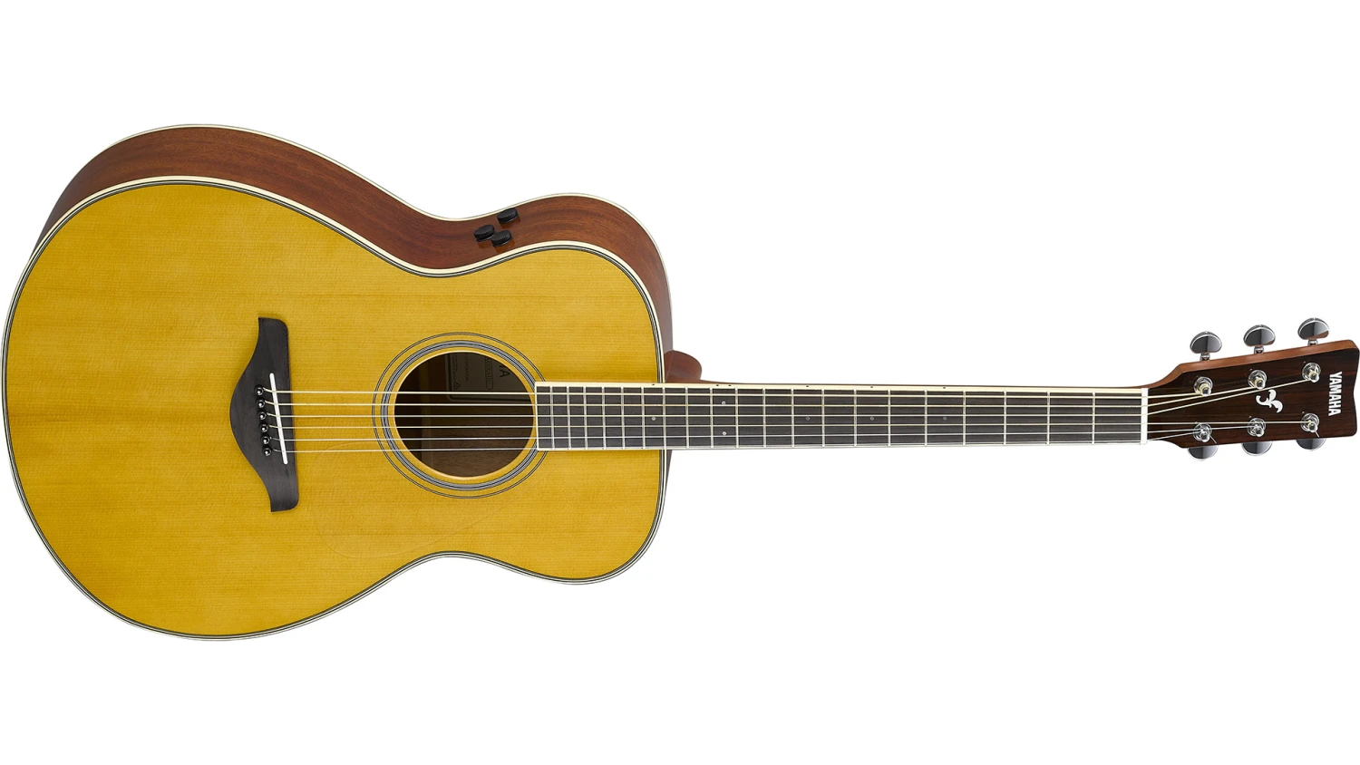 World-renowned Yamaha FG series introduces TransAcoustic model with reverb and chorus effect built in to the body of the guitar, no amp required! Concert body with Solid Spruce top with Mahogany back and sides. Listen, play, be inspired! An actuator installed on the inner surface of the guitar back vibrates in response to the vibrations of the strings. The vibrations of the actuator are then conveyed to the body of the guitar, and to the air in and around the guitar body, generating authentic reverb and chorus sounds from inside the body. The Yamaha TransAcoustic Guitar creates an incredible experience without needing any external amplification or effects, just the guitar itself. It’s the most inspiring, engaging acoustic guitar you’ve ever played. Vintage Tint finish.